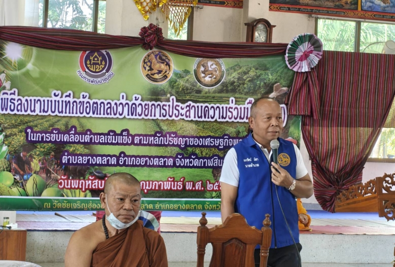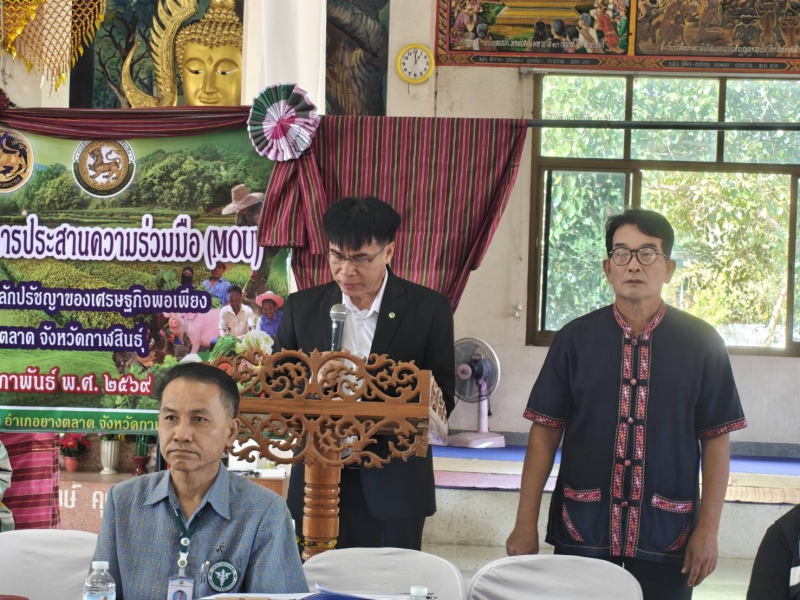 วันที่ 12 กุมภาพันธ์ 2569 เวลา 09.00 น. นายสมัย ภูคงน้ำ ปลัดองค์การบริหารส่วนตำบลยางตลาด รักษาราชการแทนนายกองค์การบริหารส่วนตำบลยางตลาด ร่วมกิจกรรมขับเคลื่อนตำบลเข้มแข็งตามหลักปรัชญาของเศรษฐกิจพอเพียง และร่วมจัดทำความร่วมมือ (MOU) ขับเคลื่อนตำบลเข้มแข็ง ประจำปีงบประมาณ พ.ศ.2569 โดยมีนายเอกรัตน์ มิสา นายอำเภอยางตลาด เป็นประธานในพิธีฯ ทั้งนี้มี หัวหน้าส่วนราชการ ผู้นำชุมชน และประชาชน เข้าร่วมกิจกรรมดังกล่าว ณ วัดชัยเจริญฮ่องฮี หมู่ที่ 14