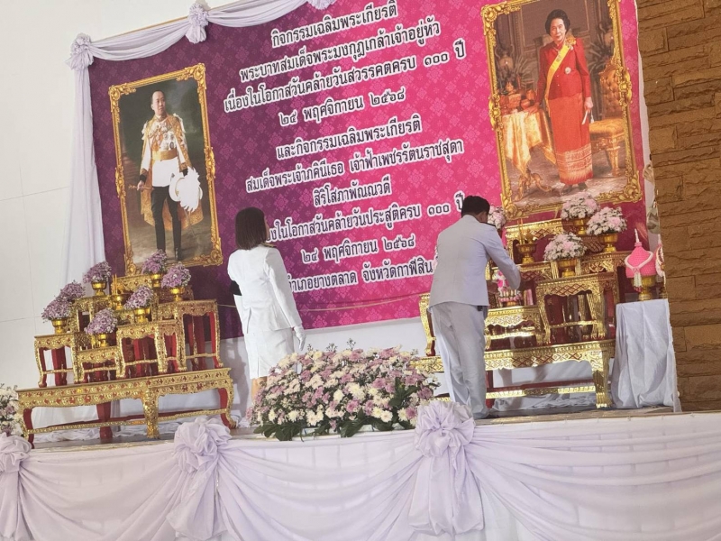 วันจันทร์ที่ 24 พฤศจิกายน 2568 เวลา 08.00 น.นายวราพงษ์ เศรษฐ์รักษา นายกองค์การบริหารส่วนตำบลยางตลาด มอบหมายให้ นายบุญช่วย กุญชะโมรินทร์ รองนายกองค์การบริหารส่วนตำบลยางตลาด เข้าร่วมกิจกรรมพิธีวางพวงมาลาราชสักการะพระบาทสมเด็จพระมงกุฎเกล้าเจ้าอยู่หัว และพิธีวางพานพุ่มดอกไม้ถวายสักการะสมเด็จพระเจ้าภคินีเธอ เจ้าฟ้าเพชรรัตนราชสุดาสิริโสภาพัณณวดี เนื่องในโอกาสวันคล้ายวันสวรรคต 100 ปี โดยมีนายเอกรัตน์ มิสา นายอำเภอยางตลาด เป็นประธานในพิธีฯ ณ หอประชุมประชุมอำเภอยางตลาด จังหวัดกาฬสินธุ์