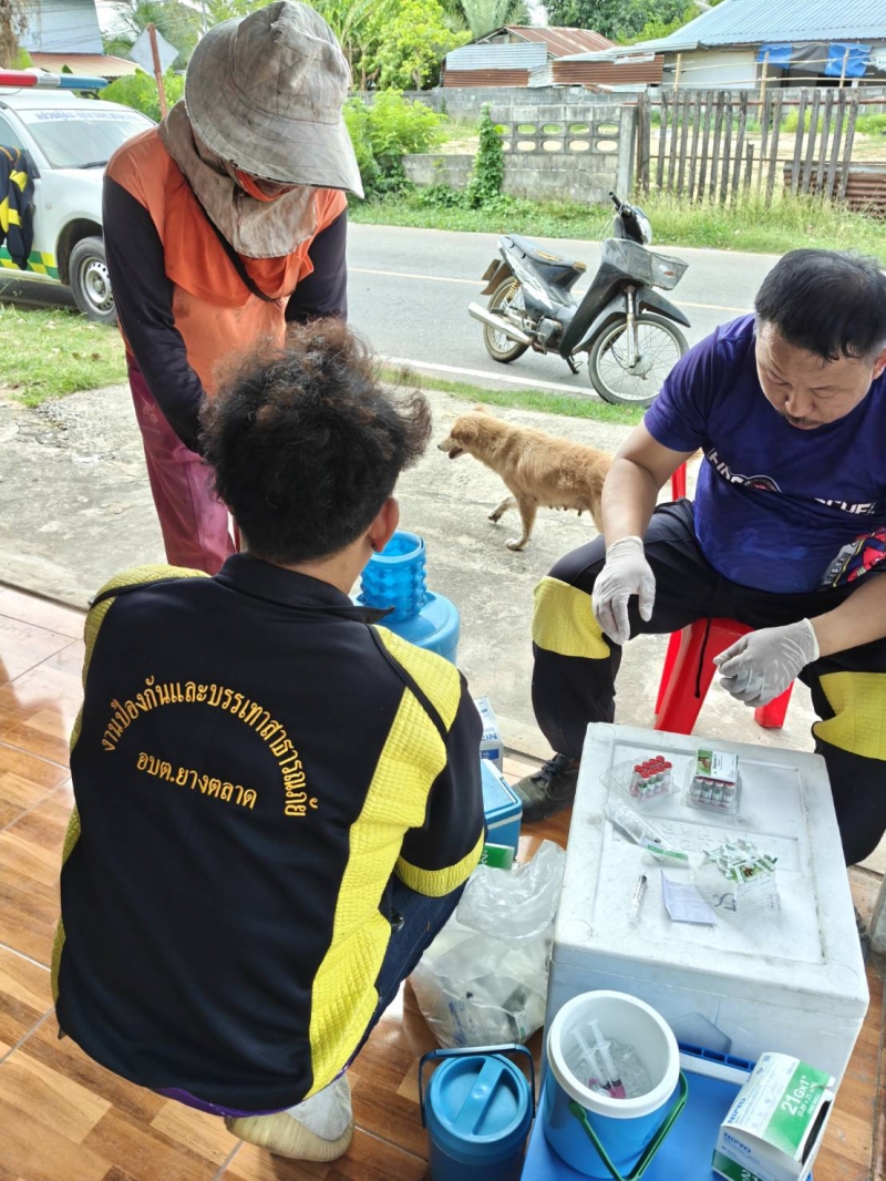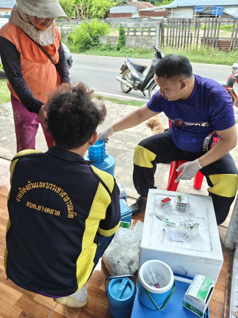 วันที่ 6 มีนาคม 2569 เวลา 09.00 น. นายทรงศิลป์ ภูกาสอน นายกองค์การบริหารส่วนตำบลยางตลาด มอบหมายให้งานสาธารณสุขและสิ่งแวดล้อม ลงพื้นที่ให้บริการฉีดวัคซีนป้องกันโรคพิษสุนัขบ้าแก่สุนัขและแมวของประชาชนในชุมชน เพื่อควบคุมและป้องกันการแพร่ระบาดของโรค (พื้นที่เสี่ยง) โดยมีประชาชนนำสัตว์เลี้ยงมารับบริการอย่างต่อเนื่อง เพื่อสร้างความปลอดภัยให้กับทั้งสัตว์เลี้ยงและคนในชุมชน บ้านเปลือย หมู่ที่ 5 บ้านหัวงัว หมู่ที่ 7 และหมู่ที่ 8