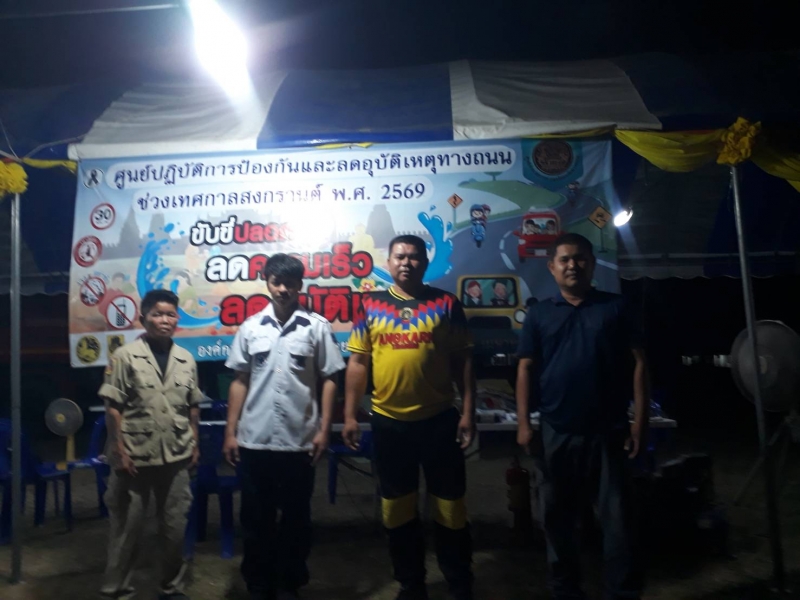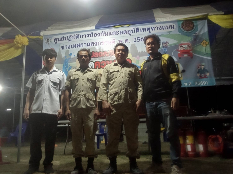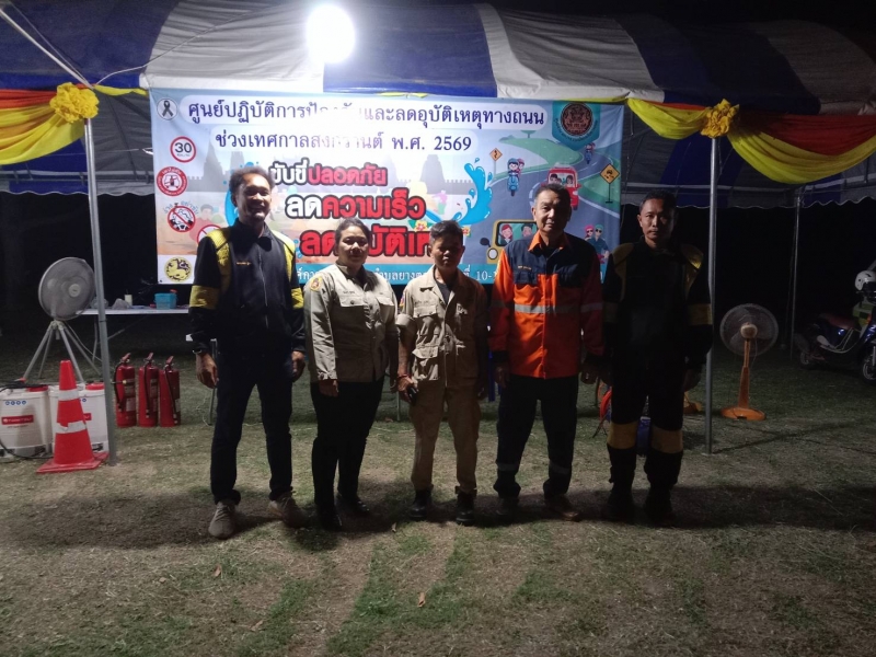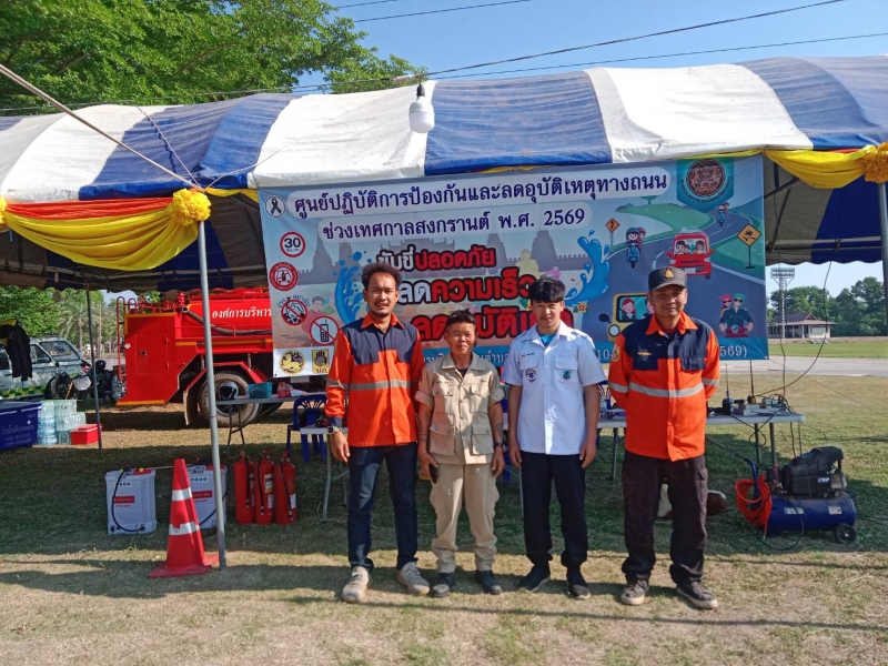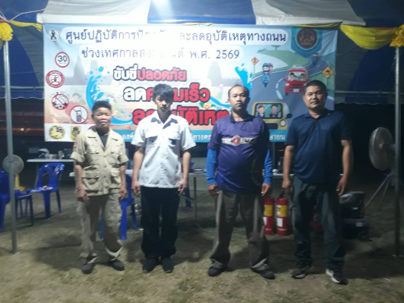 ระหว่างวันที่ 10 เมษายน 2569 - วันที่ 17 เมษายน 2569 งานป้องกันและบรรเทาสาธารณภัย ปฏิบัติหน้าที่เข้าเวร “7 วันอันตราย” ช่วงเทศกาลสงกรานต์ ร่วมกับเจ้าหน้าที่ท้องถิ่น บูรณาการร่วมกับฝ่ายปกครอง เจ้าหน้าที่ตำรวจ และอาสาสมัครสาธารณสุขประจำหมู่บ้าน (อสม.) ในการตั้งจุดบริการประชาชนตามเส้นทางหลักและจุดเสี่ยงต่าง ๆ เพื่ออำนวยความสะดวกและดูแลความปลอดภัยให้กับผู้ใช้รถใช้ถนน โดยเน้นมาตรการสำคัญ ได้แก่ การรณรงค์ “เมาไม่ขับ” การตรวจวัดแอลกอฮอล์ การควบคุมความเร็ว การสวมหมวกนิรภัย และการปฏิบัติตามกฎจราจรอย่างเคร่งครัด พร้อมทั้งจัดเจ้าหน้าที่ให้บริการช่วยเหลือฉุกเฉินตลอด 24 ชั่วโมง ทั้งการปฐมพยาบาลเบื้องต้น การประสานหน่วยกู้ชีพกู้ภัย และการอำนวยความสะดวกด้านการจราจร