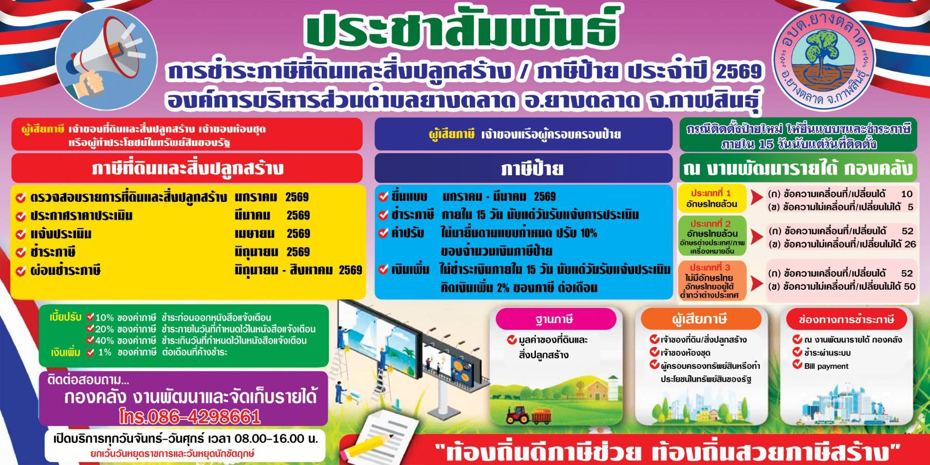 ประชาสัมพันธ์ การชำระภาษีที่ดินและสิ่งปลูกสร้าง/ภาษีป้าย ประจำปี 2569