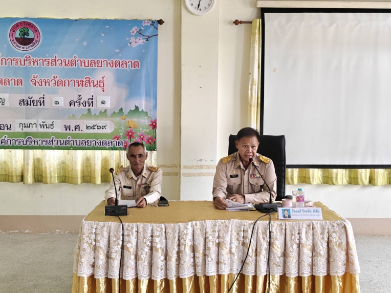 วันที่ 24 กุมภาพันธ์ 2569 เวลา 09.00 น. ร้อยตรีวีระชัย พิสัย ประธานสภาองค์การบริหารส่วนตำบลยางตลาด เป็นประธานเปิดการประชุมองค์การบริหารส่วนตำบลยางตลาด สมัยสามัญ สมัยที่1 ครั้งที่ 1 ประจำปี พ.ศ. 2569 ในการประชุมครั้งนี้ นายทรงศิลป์ ภูกาสอน นายกองค์การบริหารส่วนตำบลยางตลาด ได้แถลงนโยบายต่อสภาองค์การบริหารส่วนตำบลยางตลาด ทั้งนี้ มีสมาชิกสภาองค์การบริหารส่วนตำบล คณะผู้บริหาร ผู้อำนวยการกอง หัวหน้าฝ่ายและเจ้าหน้าที่ที่เกี่ยวข้องเข้าร่วมการประชุมดังกล่าว ณ ห้องประชุมองค์การบริหารส่วนตำบลยางตลาด