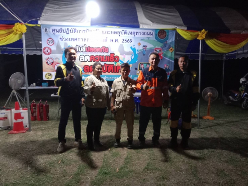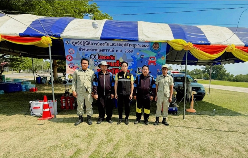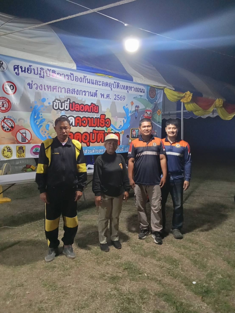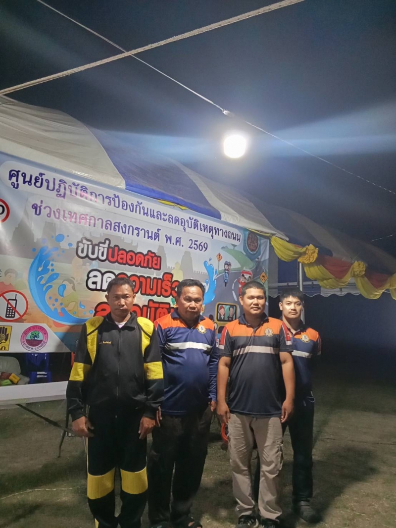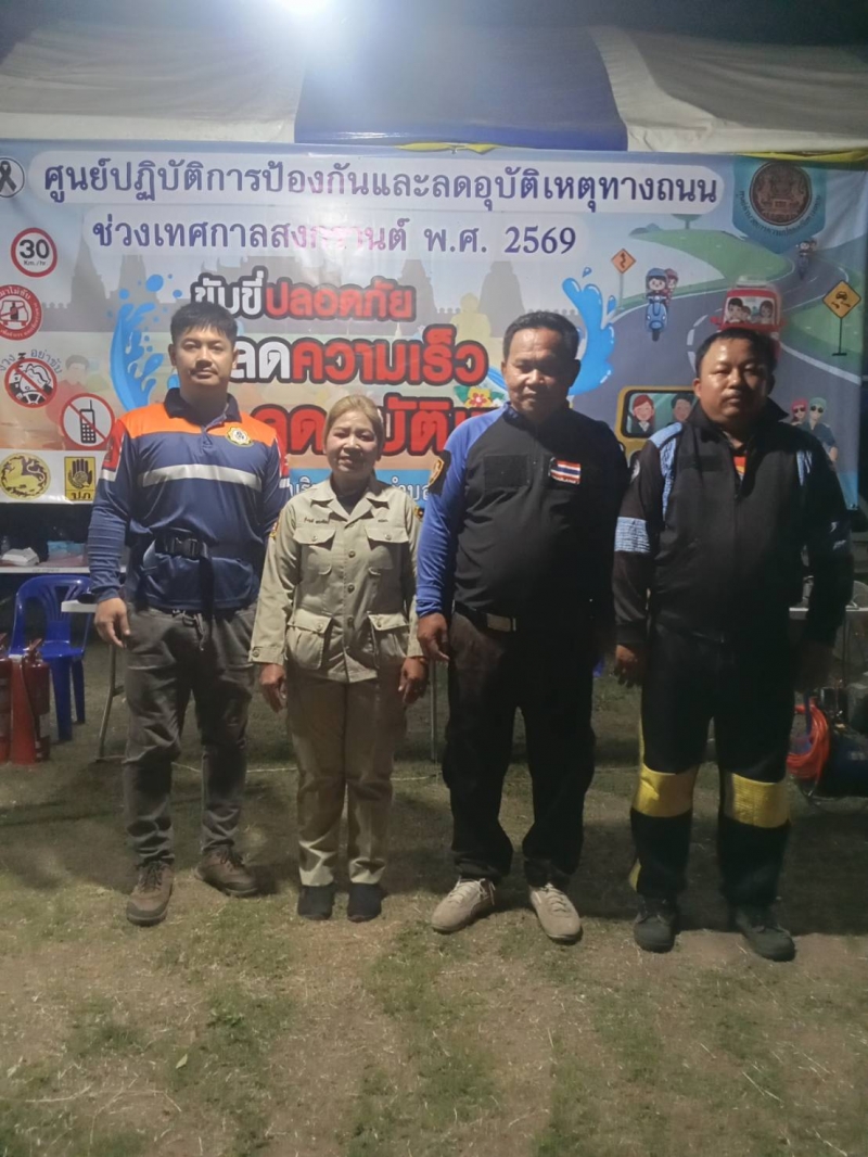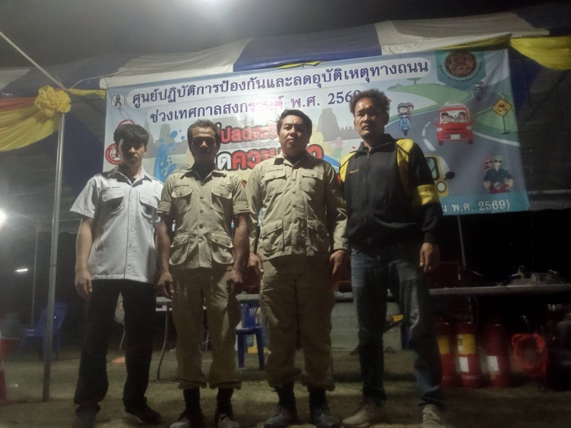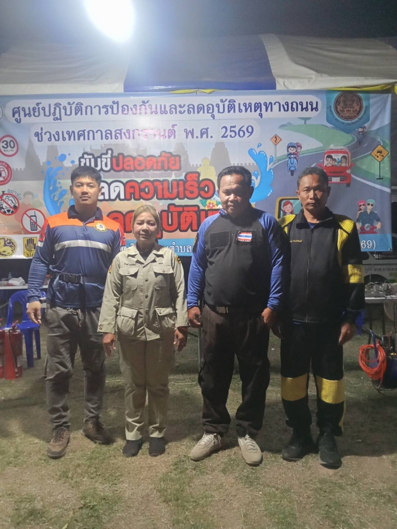 ระหว่างวันที่ 10 เมษายน 2569 - วันที่ 17 เมษายน 2569 งานป้องกันและบรรเทาสาธารณภัย ปฏิบัติหน้าที่เข้าเวร “7 วันอันตราย” ช่วงเทศกาลสงกรานต์ ร่วมกับเจ้าหน้าที่ท้องถิ่น บูรณาการร่วมกับฝ่ายปกครอง เจ้าหน้าที่ตำรวจ และอาสาสมัครสาธารณสุขประจำหมู่บ้าน (อสม.) ในการตั้งจุดบริการประชาชนตามเส้นทางหลักและจุดเสี่ยงต่าง ๆ เพื่ออำนวยความสะดวกและดูแลความปลอดภัยให้กับผู้ใช้รถใช้ถนน โดยเน้นมาตรการสำคัญ ได้แก่ การรณรงค์ “เมาไม่ขับ” การตรวจวัดแอลกอฮอล์ การควบคุมความเร็ว การสวมหมวกนิรภัย และการปฏิบัติตามกฎจราจรอย่างเคร่งครัด พร้อมทั้งจัดเจ้าหน้าที่ให้บริการช่วยเหลือฉุกเฉินตลอด 24 ชั่วโมง ทั้งการปฐมพยาบาลเบื้องต้น การประสานหน่วยกู้ชีพกู้ภัย และการอำนวยความสะดวกด้านการจราจร