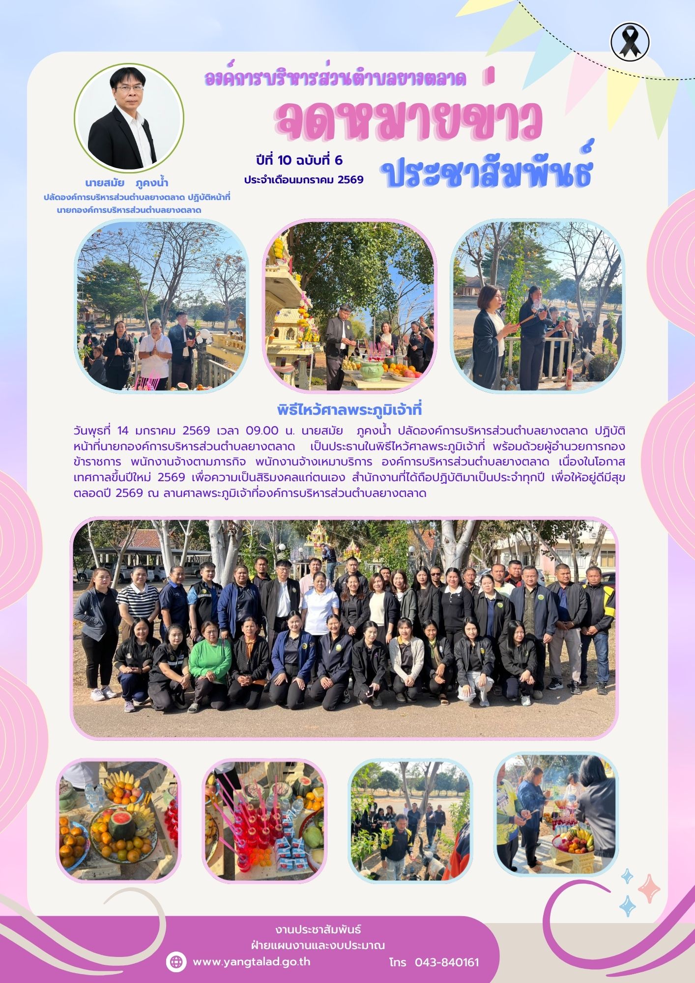 วันพุธที่ 14 มกราคม 2569 เวลา 09.00 น. พิธีไหว้ศาลพระภูมิเจ้าที่
